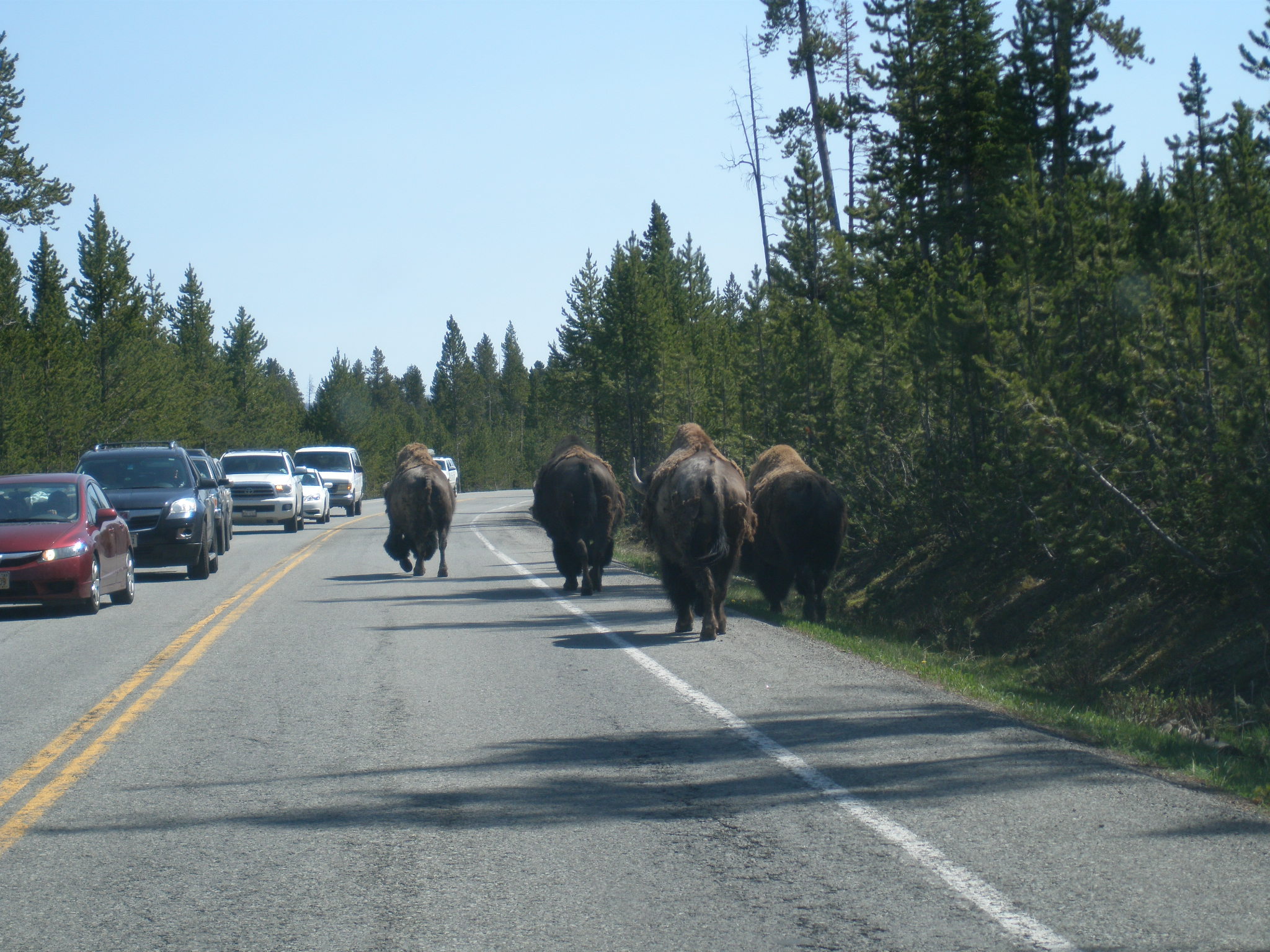 I took a few photos with an Olympus Stylus camera. If you want to see Yellowstone in all its splendor, the wildlife you most want to see lives in the back country, which is far from the road most traveled.